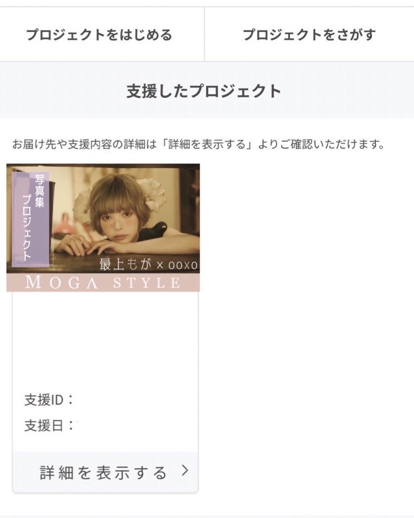 ②開くと支援済みのプロジェクトとIDが表示されます。